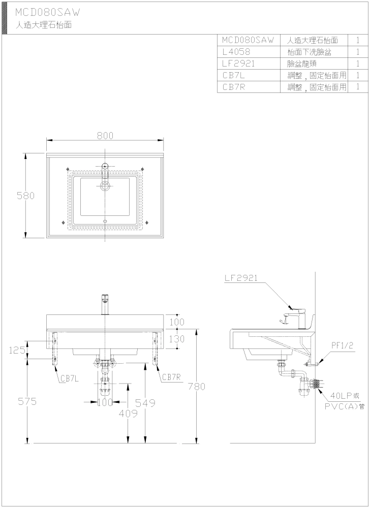• 人造大理石檯面  MCD080-L4058-6188