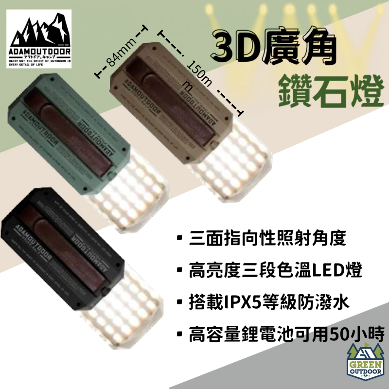 【綠色工場】 ADAMOUTDOOR|3D廣角鑽石燈 LED燈 露營燈 照明燈 戶外照明 小夜燈白/暖白/黃光