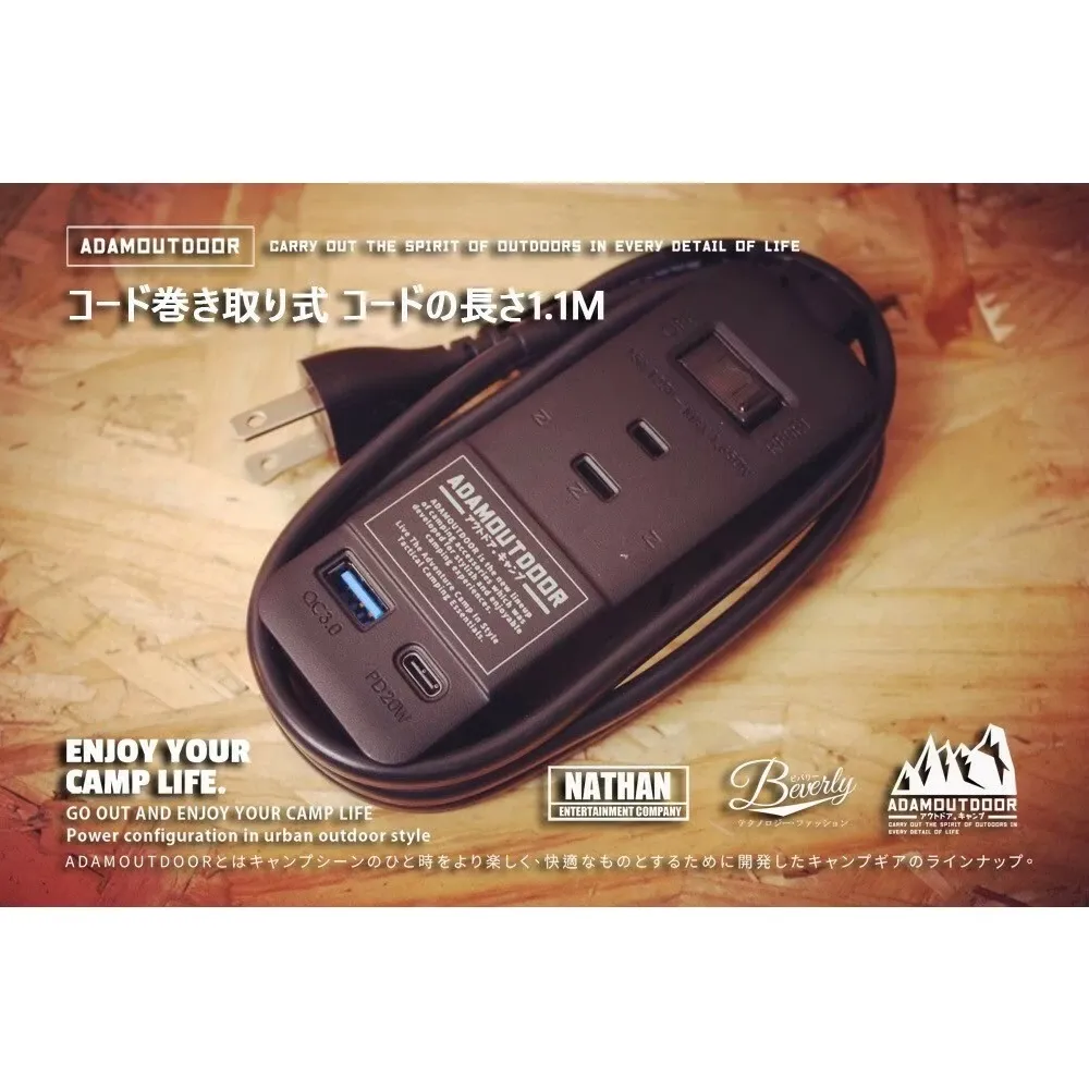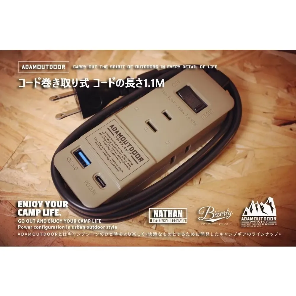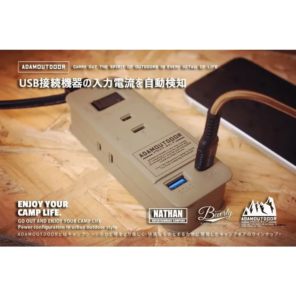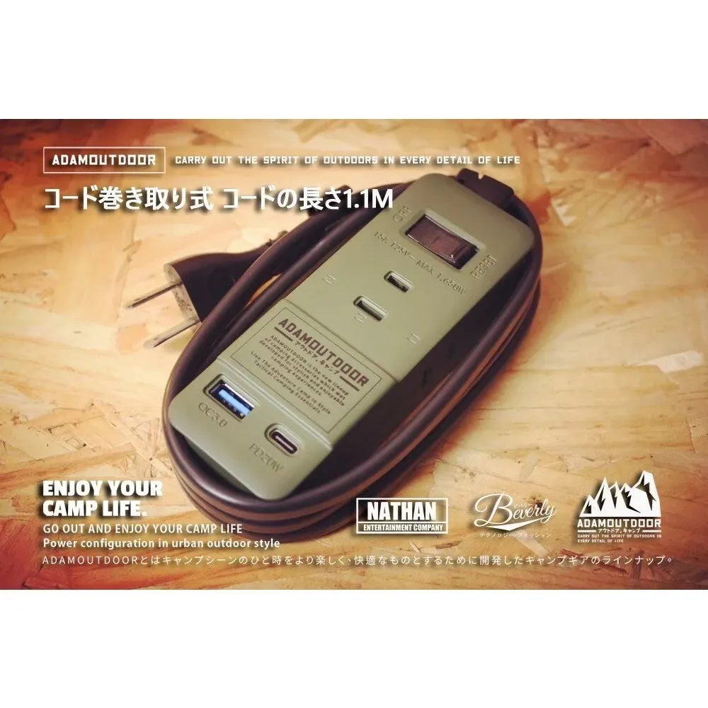 ADAMOUTDOOR|三座擴充 PD/QC USB延長線 【綠色工場】1.M線長 USB充電座 軍風 延長線電源線