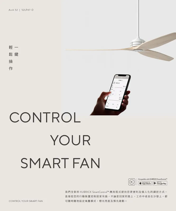 品名:酷必客 52吋DC吊扇 ARCH系列 附遙控器 52LP47-D 可APP智能控制