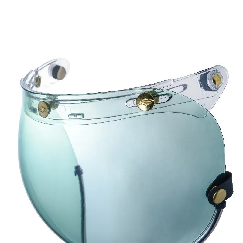 全鏡精銅製黃金色洗光鉚釘,不生鏽,三釦鉚釘雕刻LOGO增加精緻細膩感,強化耐磨抗刮鏡片,曲面塑出成型,可掀可拆設計,抗UV,防冷防風防雨,透視力佳,視野清晰,鏡釦可調整安裝,適用任何三釦標準釦安全帽體。復古車、個性車等車友最愛之風鏡款。