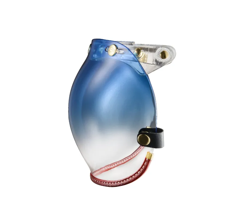 全鏡精銅製黃金色洗光鉚釘,不生鏽,三釦鉚釘雕刻LOGO增加精緻細膩感,強化耐磨抗刮鏡片,曲面塑出成型,可掀可拆設計,抗UV,防冷防風防雨,透視力佳,視野清晰,鏡釦可調整安裝,適用任何三釦標準釦安全帽體。復古車、個性車等車友最愛之風鏡款。