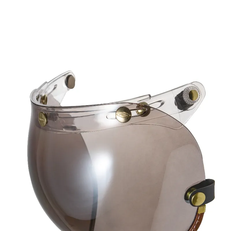 全鏡精銅製黃金色洗光鉚釘,不生鏽,三釦鉚釘雕刻LOGO增加精緻細膩感,強化耐磨抗刮鏡片,曲面塑出成型,可掀可拆設計,抗UV,防冷防風防雨,透視力佳,視野清晰,鏡釦可調整安裝,適用任何三釦標準釦安全帽體。復古車、個性車等車友最愛之風鏡款。