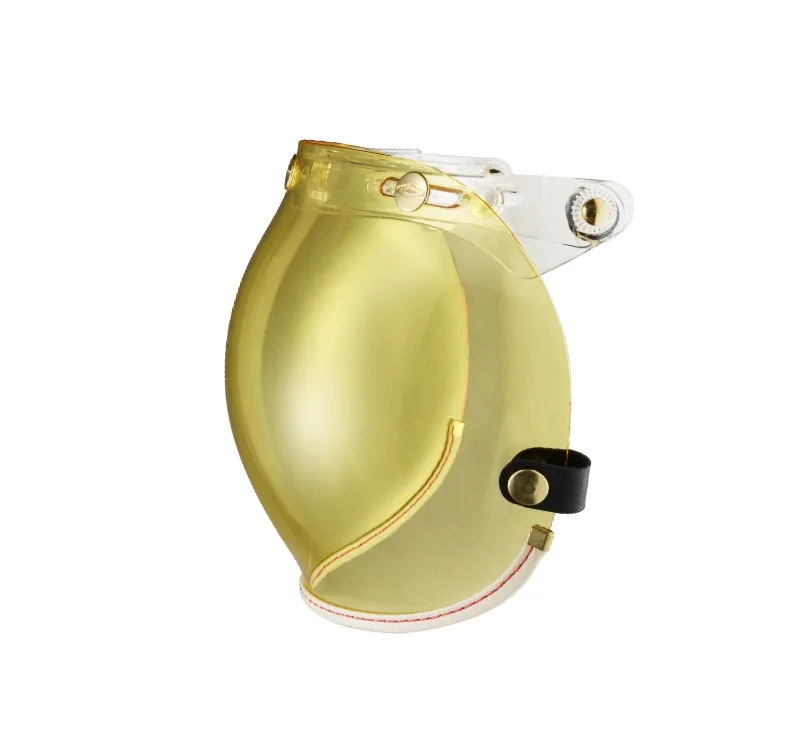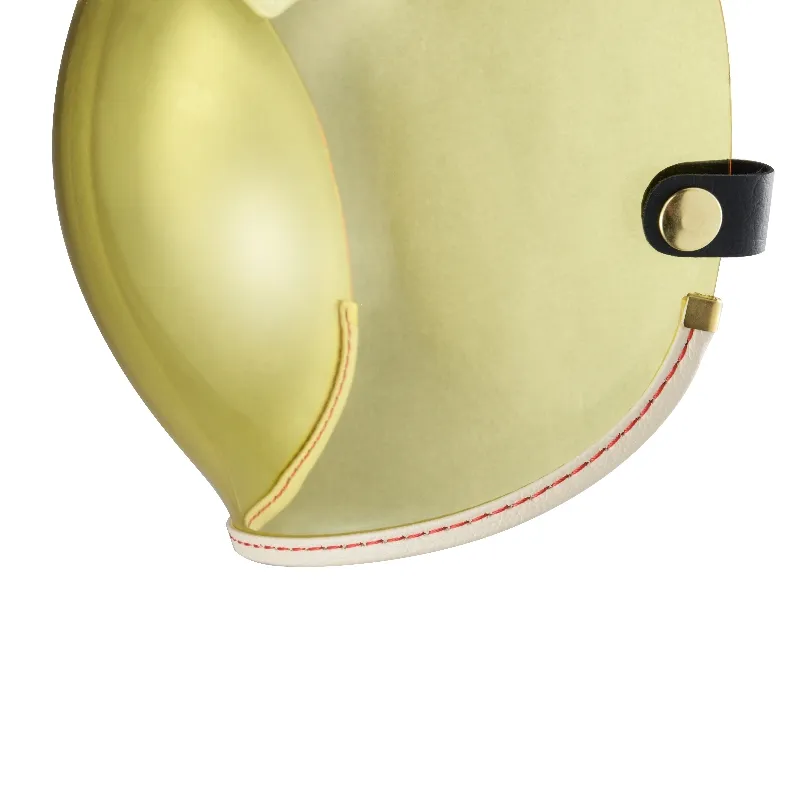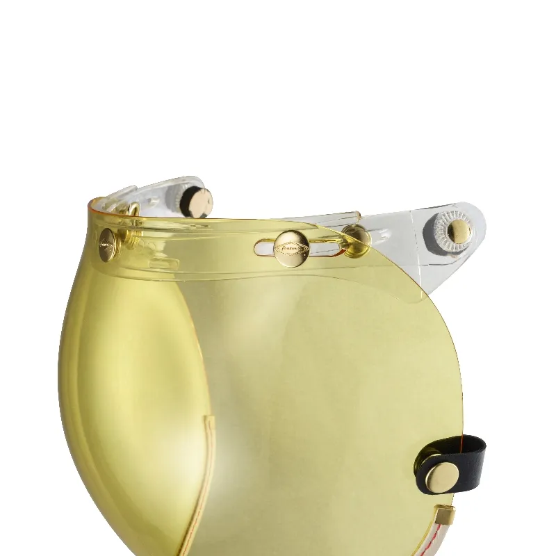 全鏡精銅製黃金色洗光鉚釘,不生鏽,三釦鉚釘雕刻LOGO增加精緻細膩感,強化耐磨抗刮鏡片,曲面塑出成型,可掀可拆設計,抗UV,防冷防風防雨,透視力佳,視野清晰,鏡釦可調整安裝,適用任何三釦標準釦安全帽體。復古車、個性車等車友最愛之風鏡款。