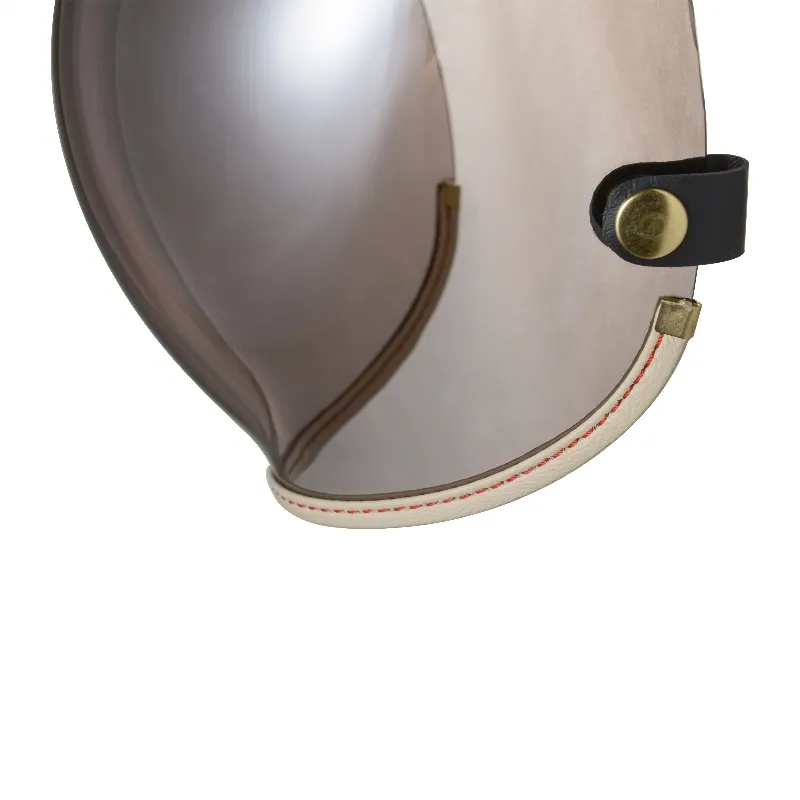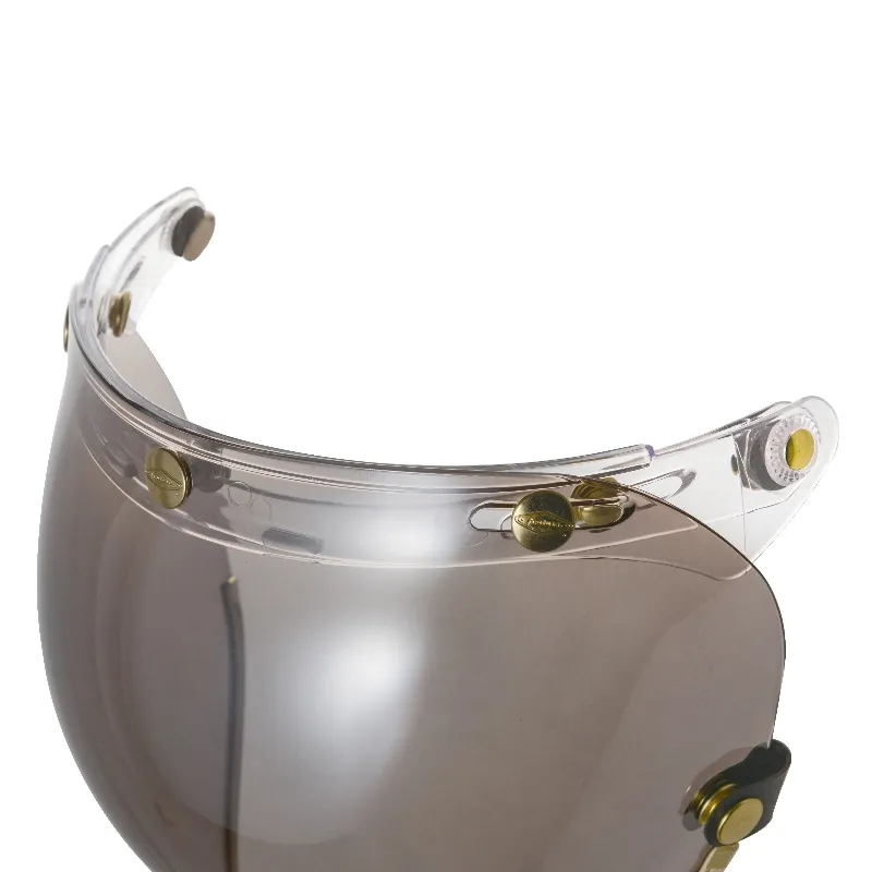 全鏡精銅製黃金色洗光鉚釘,不生鏽,三釦鉚釘雕刻LOGO增加精緻細膩感,強化耐磨抗刮鏡片,曲面塑出成型,可掀可拆設計,抗UV,防冷防風防雨,透視力佳,視野清晰,鏡釦可調整安裝,適用任何三釦標準釦安全帽體。復古車、個性車等車友最愛之風鏡款。