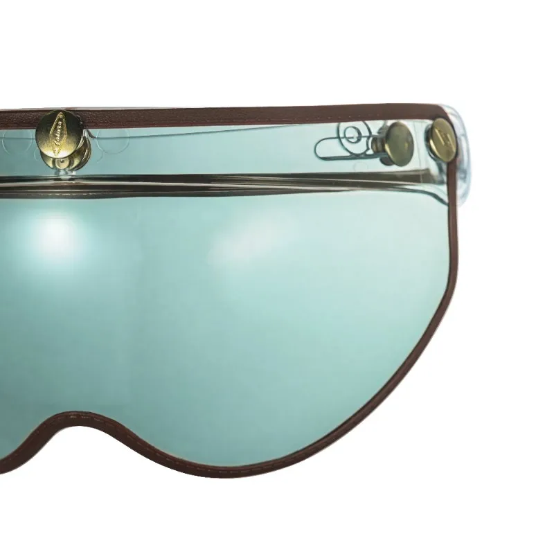 特色:W半截式風鏡為復古車、個性車車友們愛用的款式,建議搭配半罩及3/4款帽型,鏡面為耐磨抗刮曲面塑出成型,具防風防雨防冷等功能,白天抗UV透視力極佳,夜晚亦視線清晰,首創全鏡黃金色精銅洗光雕刻鉚釘,耐久不易生鏽。我們設計的每個作品,堅持以態度與精神讓產品工藝匠心獨具,讓您在配戴時擁有自我風格,魅力突出且特色強烈。