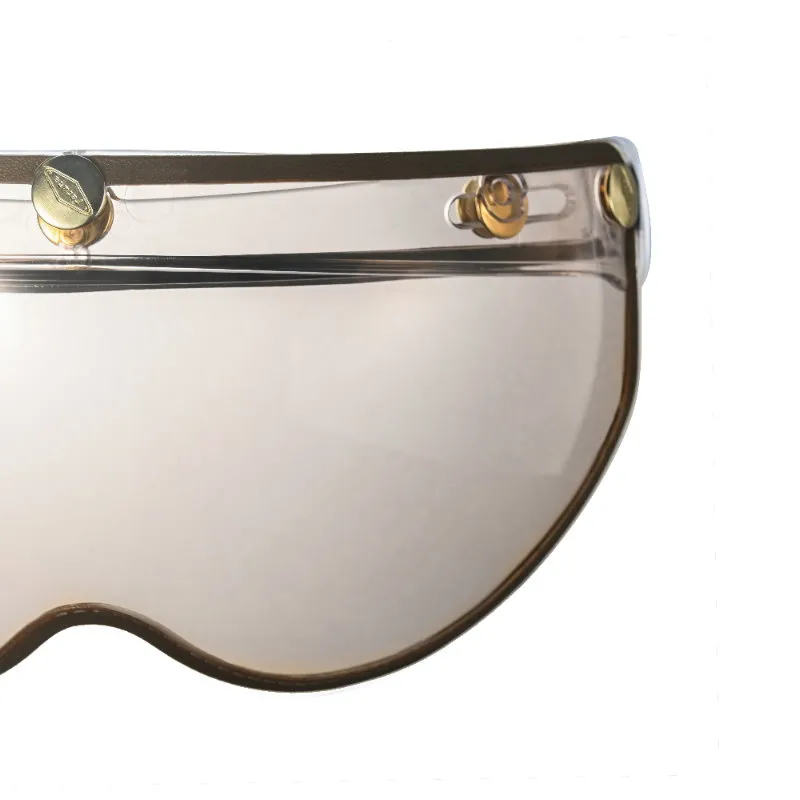 特色:W半截式風鏡為復古車、個性車車友們愛用的款式,建議搭配半罩及3/4款帽型,鏡面為耐磨抗刮曲面塑出成型,具防風防雨防冷等功能,白天抗UV透視力極佳,夜晚亦視線清晰,首創全鏡黃金色精銅洗光雕刻鉚釘,耐久不易生鏽。我們設計的每個作品,堅持以態度與精神讓產品工藝匠心獨具,讓您在配戴時擁有自我風格,魅力突出且特色強烈。