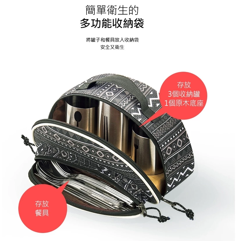 內容物:收納袋、湯匙、叉子、筷子*4、收納罐*3、原木底座*1