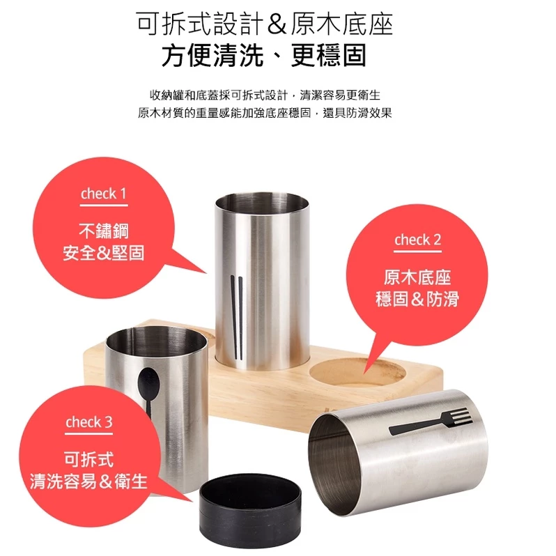 🥄3個收納罐,可分別放入筷子、湯匙、叉子等餐具
