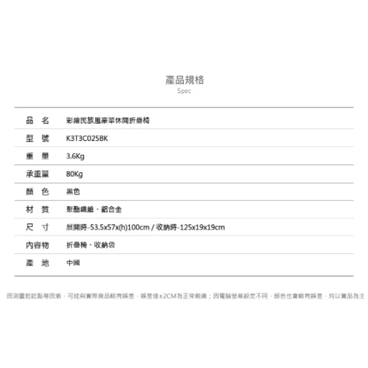 尺寸:展開時-53.5x57x(h)100cm / 收納時-19x125cm