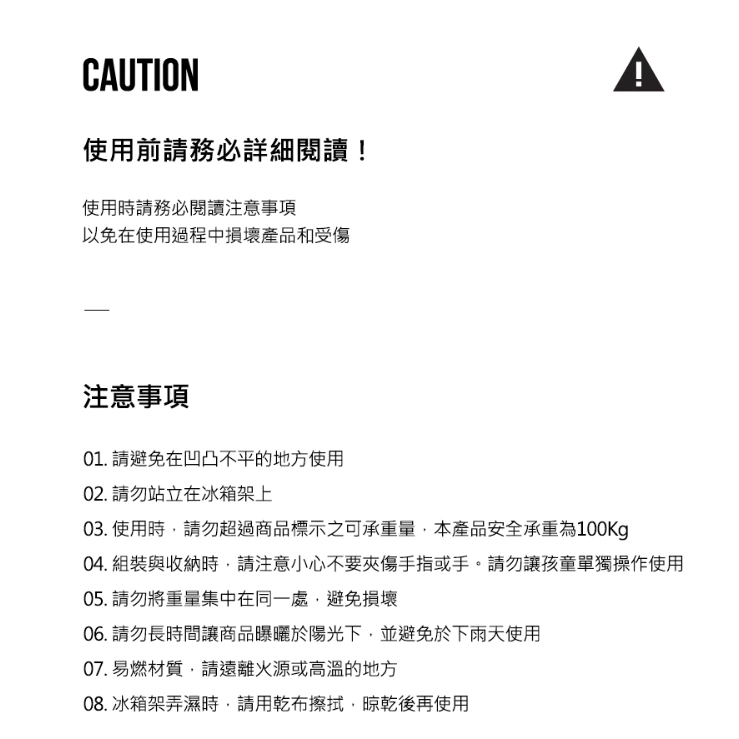 ❄高強度鋁合金製成,堅固耐用,可承重達100公斤
