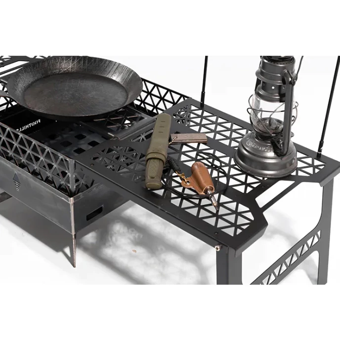 🔹一組焚火台最多可搭配四組延伸桌,形成十字型的配置,進一步滿足不同場合和人數的需求