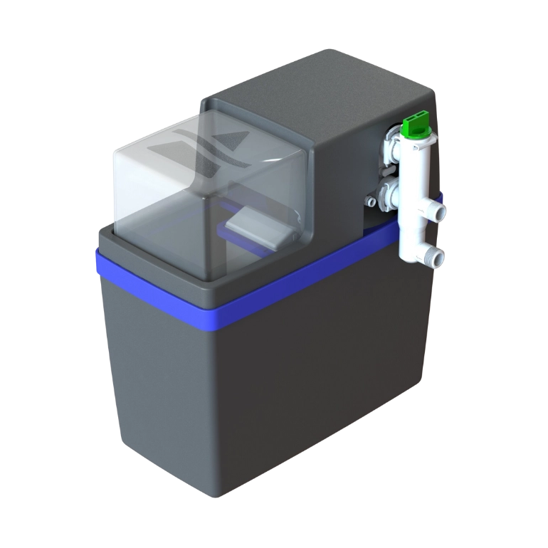 Delta軟水機100M可以從三個不同的方向連接和安裝,針對擺放位置做調整。