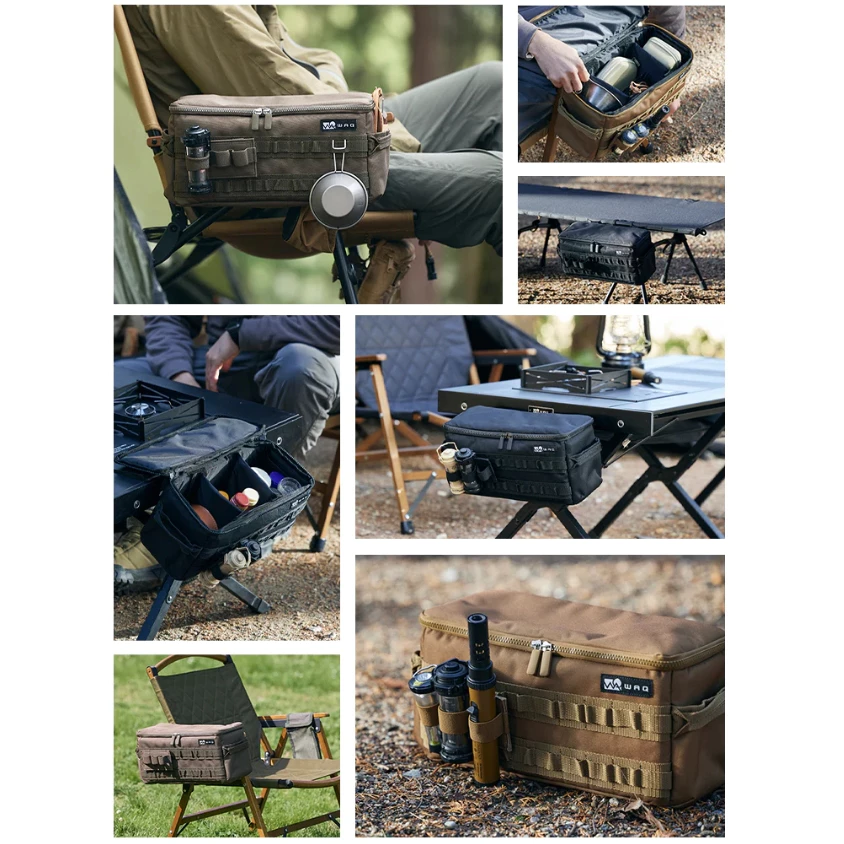 外部兩端各設有兩個袋子,內部兩端也有兩個網袋。方便存放手機、刀具、多功能工具等常用物品。