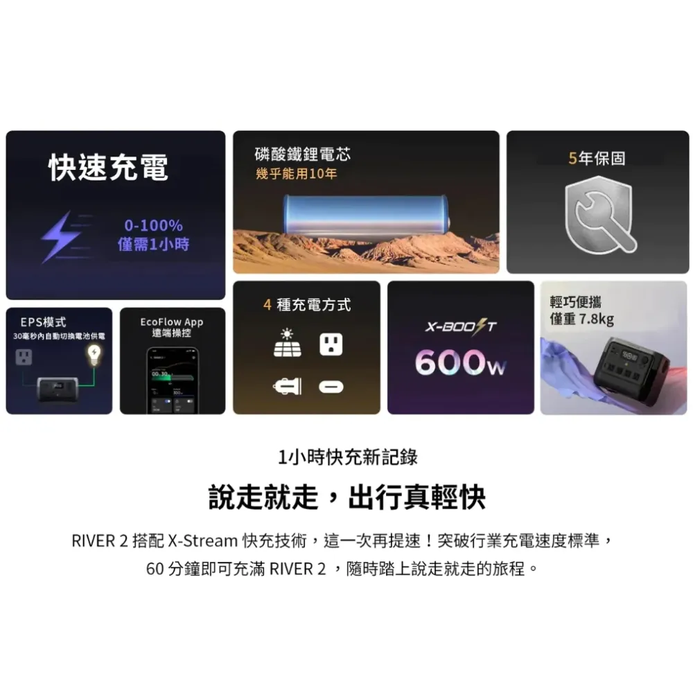 EcoFlow RIVER 2 儲能電源【綠色工場】公司貨保固五年 行動電源 磷酸鋰鐵電池 行動電池 電力站