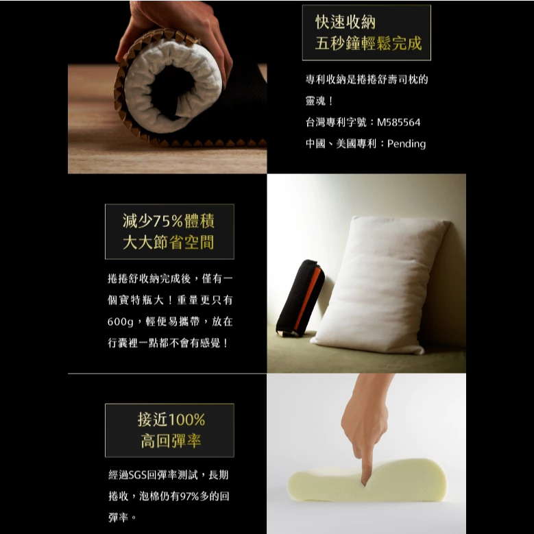 🔹快速收納,五秒鐘輕鬆完成;專利收納是捲捲舒壽司枕的靈魂!