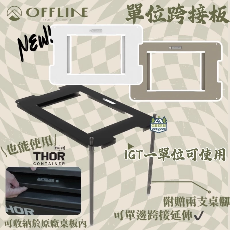 Offline 單位跨接板【綠色工場】一單位桌板 附桌腳x2 IGT 適用Thor箱 鐵桌板 可連接離線桌、Thor箱