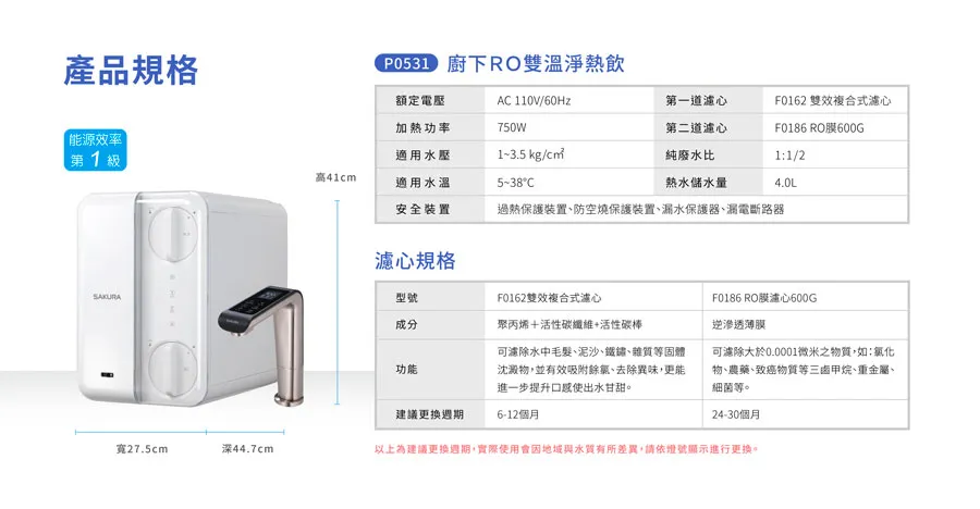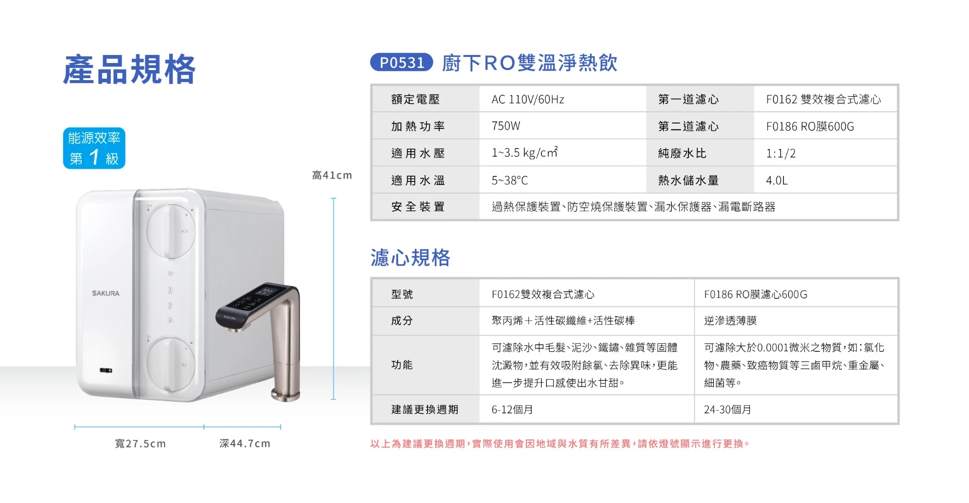 商品【SAKURA 櫻花】雙效RO淨水器 P0266