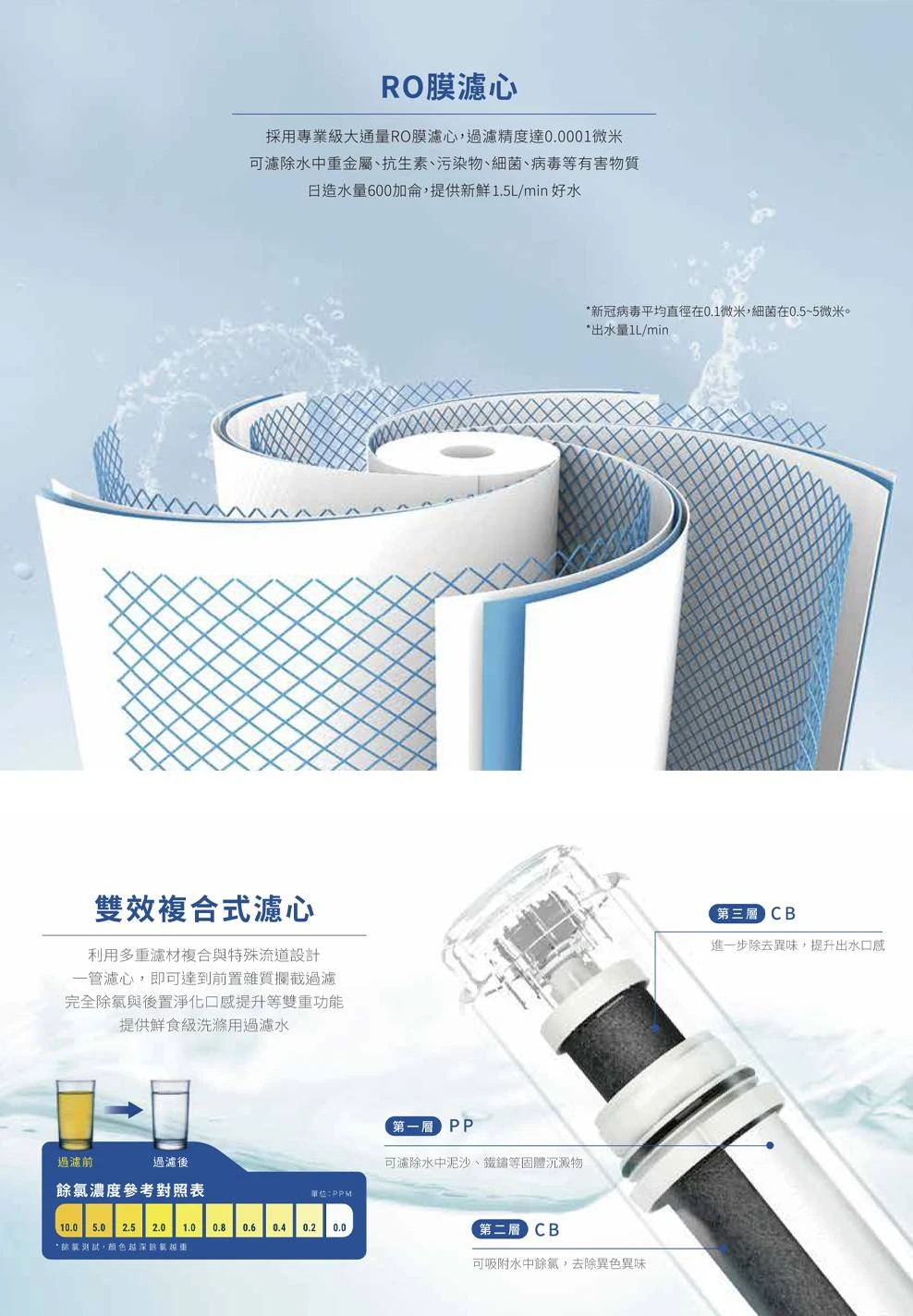 過濾方式:內建RO淨水模組,降低水垢(600加侖)