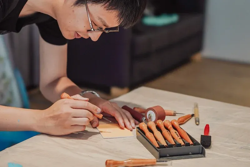 透過每一筆每一刀的刻製過程,療愈釋放壓力。