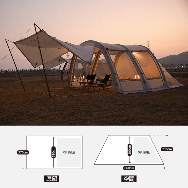 🔹具有壓倒性空間感的空氣隧道帳篷,前庭超大可延伸適合家庭多人旅遊
