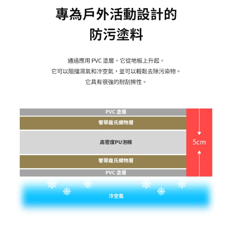 🔹5公分厚度阻絕地面濕冷,結實的支撐身體