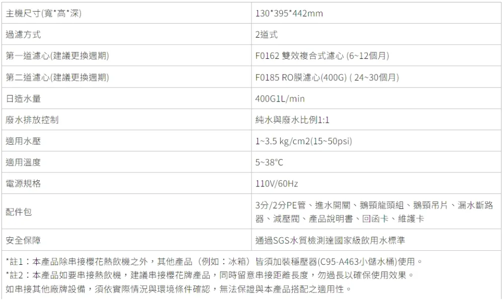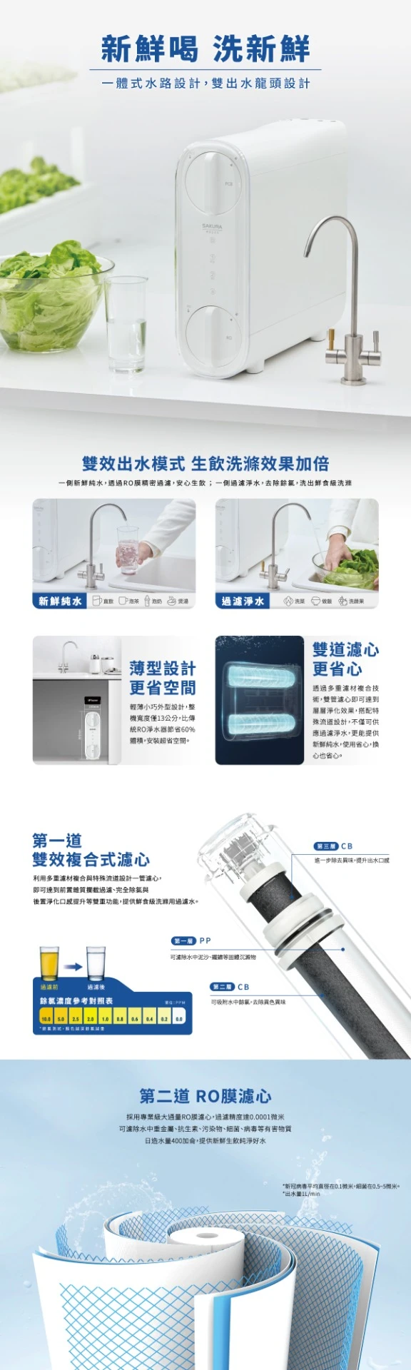 商品【SAKURA 櫻花】RO P0231&&P0235&531複合式RO淨水器專用濾心 RO膜濾心F0186 (600G) 一支【櫻花授權經銷】