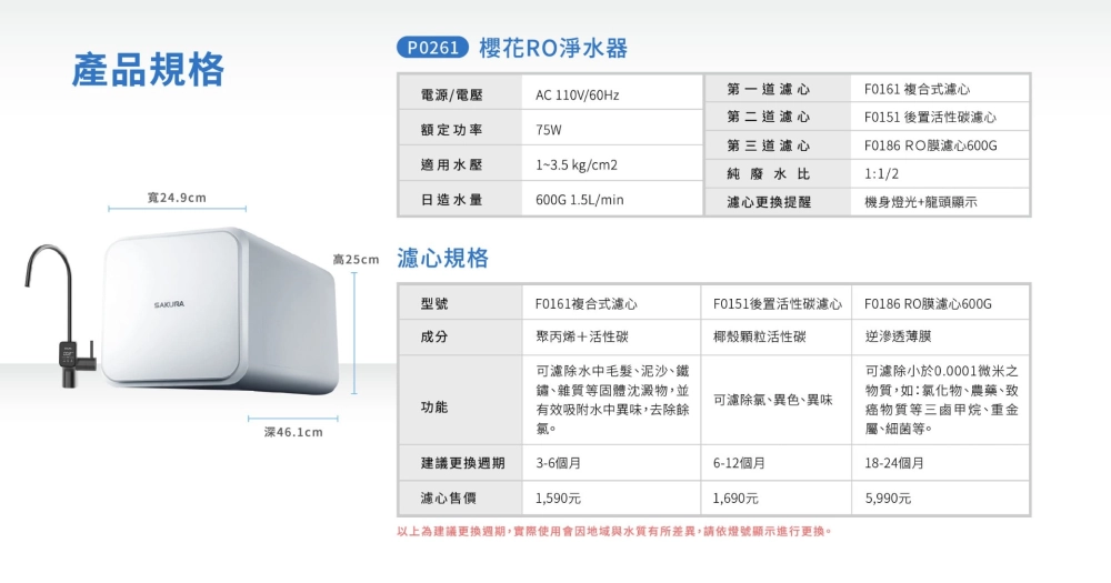 商品【SAKURA 櫻花】RO P0231淨水器專用兩年份濾心F0196 【櫻花授權經銷】