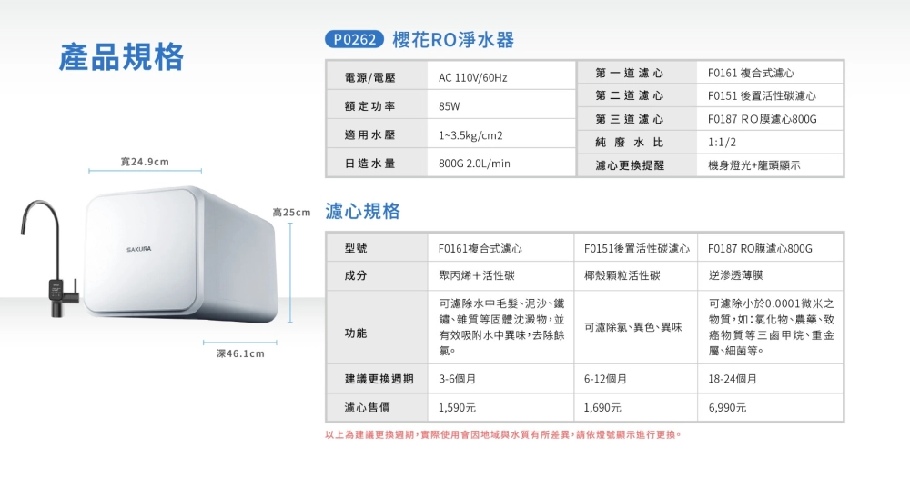 商品【SAKURA 櫻花】雙效RO淨水器 P0266