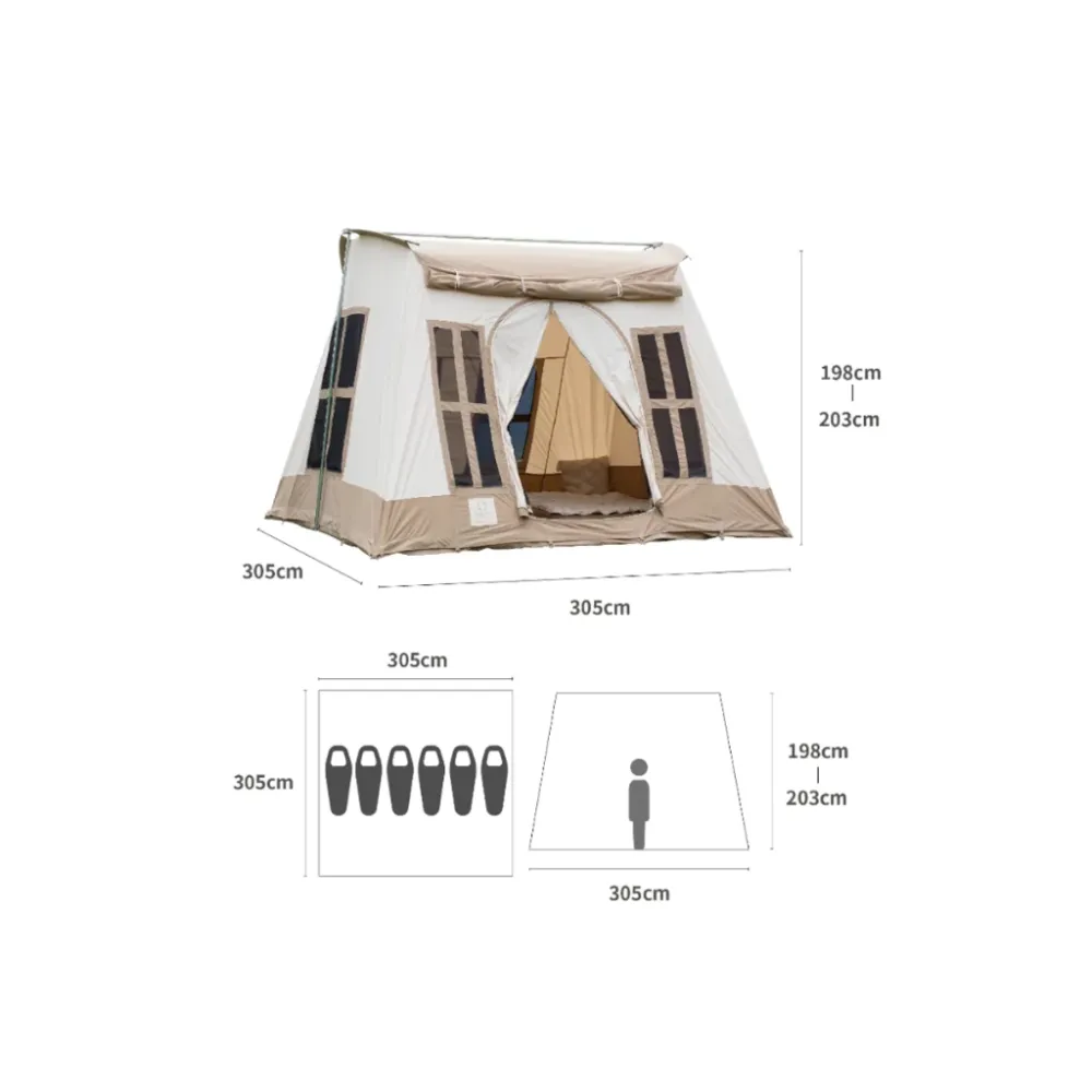 S'more Dolce Lodge溫馨屋型帳4~6人 【綠色工場】春帳 奶茶色 (帳+營柱)