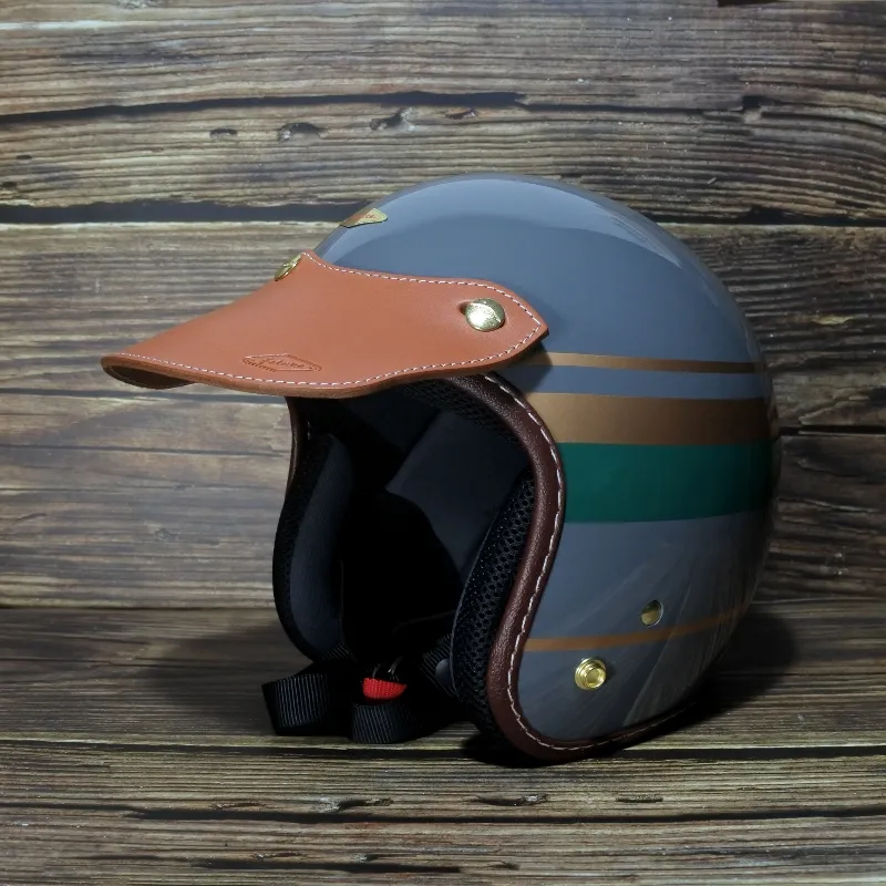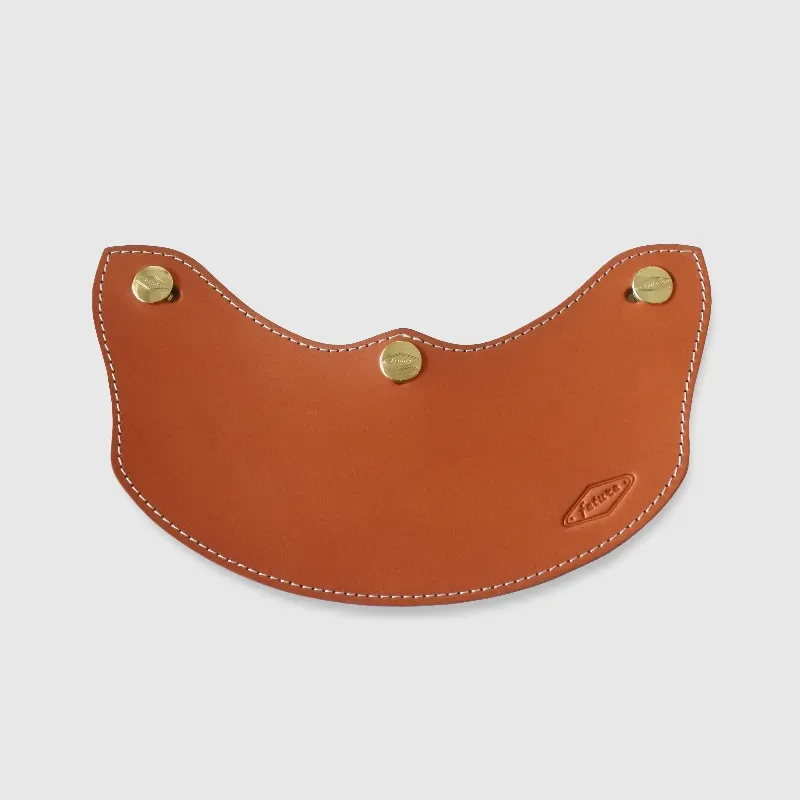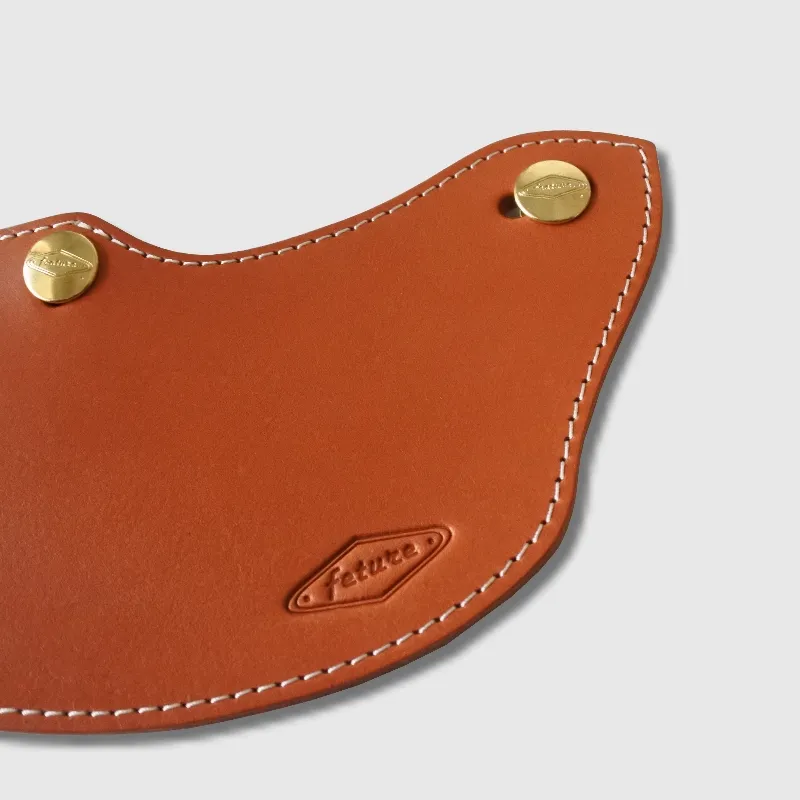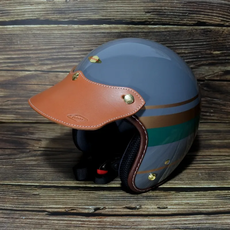 本作品希望呈現最高等級的帽舌品質,符合各種復古帽體之最佳版型,厚度採最厚的牛背皮展現,厚度約4mm,皮革硬挺易保養,不易變型,釦環使用專屬Feture銅製採用雕刻黃金釦,不易生鏽,背部皮革毛邊處理平整,邊緣收邊手工拋光,縫線手工縫製,帽舌三釦皆設計可微調整,任何三釦標準釦安全帽皆可輕易安裝。