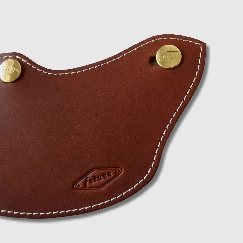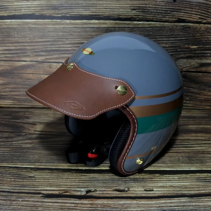 本作品希望呈現最高等級的帽舌品質,符合各種復古帽體之最佳版型,厚度採最厚的牛背皮展現,厚度約4mm,皮革硬挺易保養,不易變型,釦環使用專屬Feture銅製採用雕刻黃金釦,不易生鏽,背部皮革毛邊處理平整,邊緣收邊手工拋光,縫線手工縫製,帽舌三釦皆設計可微調整,任何三釦標準釦安全帽皆可輕易安裝。