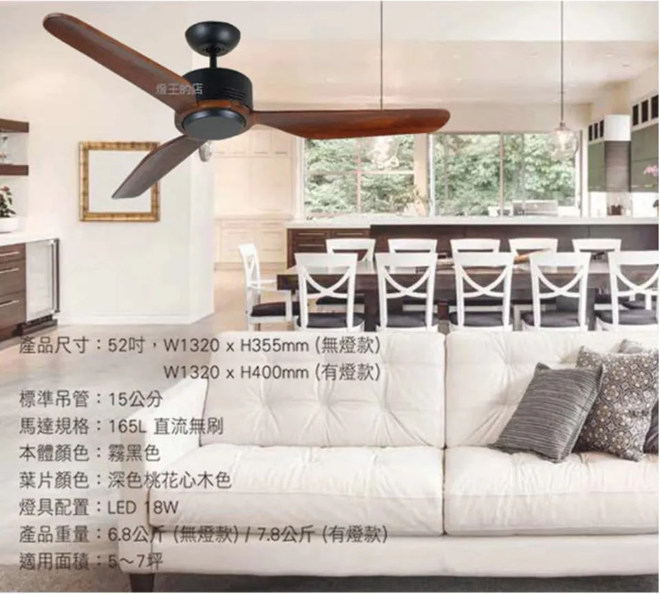 商品將財 台灣製 46吋/52吋/56吋吊扇+LED燈具35W+遙控器DC77-668 DC77-670 DC77-632