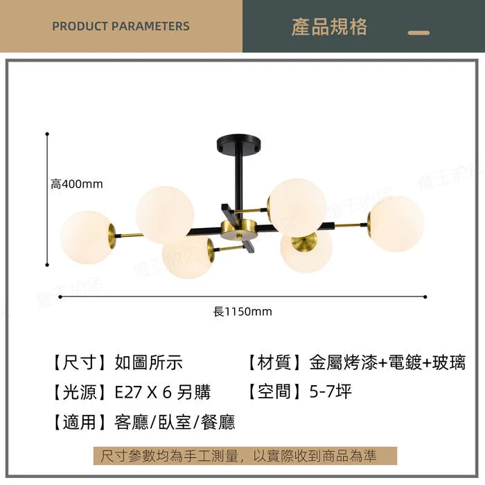 光源: 另購 E27*6 LED燈泡(限用E27冰棒燈泡)