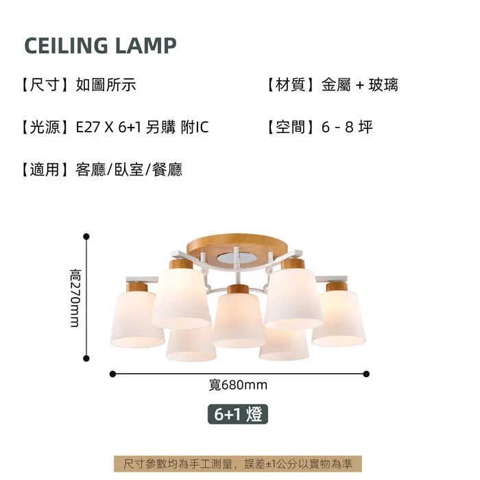 商品柏拉圖 設計師新款 半吸頂燈6+1燈 客廳燈 餐廳燈 房間燈 61811