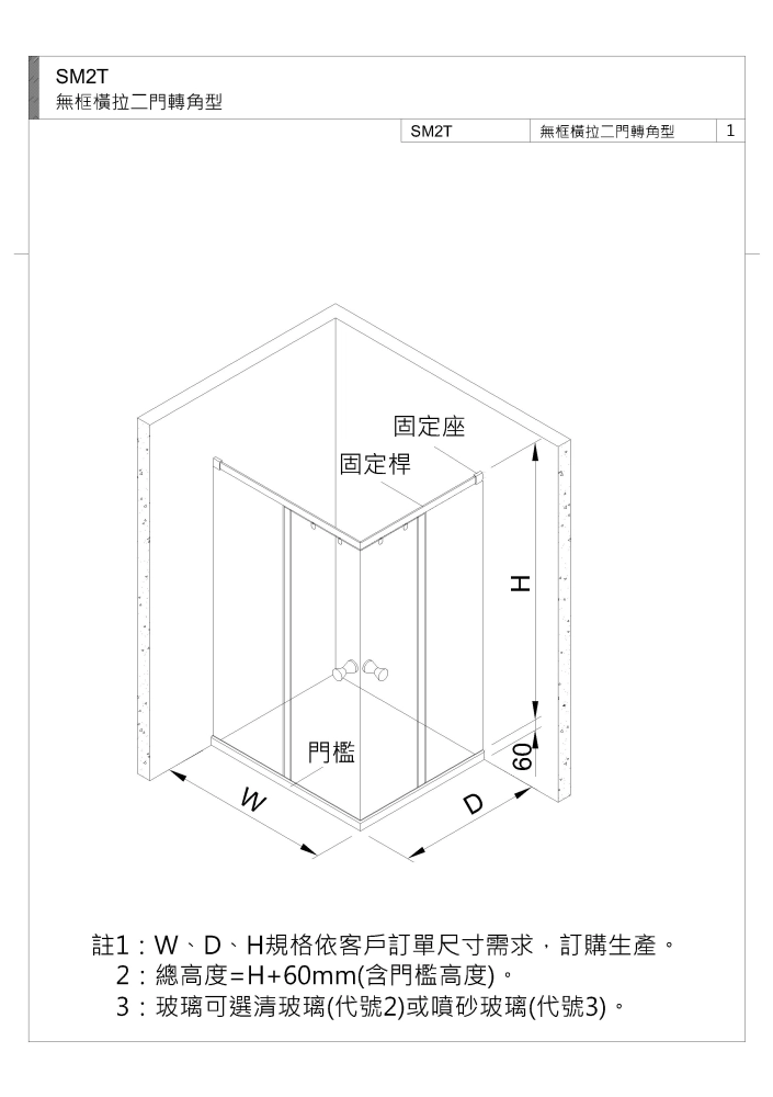 SM2T(清強玻) +SB6Y(人造大理石門檻)