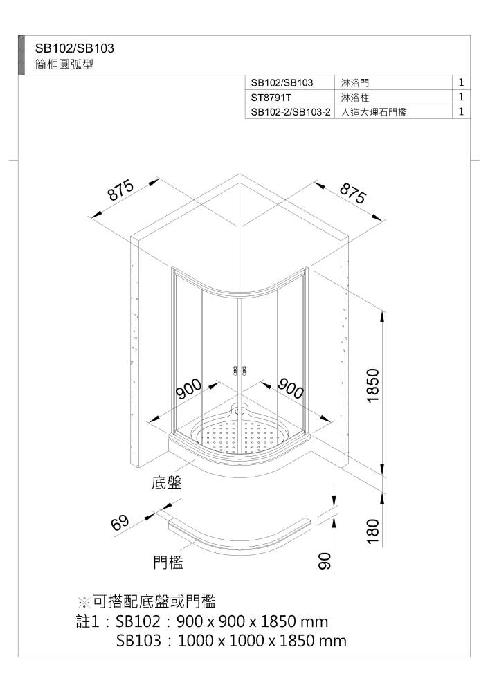SB102:900 x 900 x 1850mm