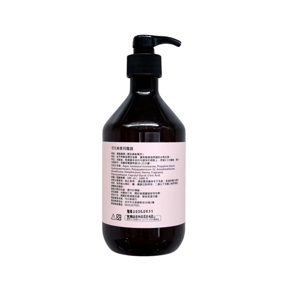想要一次滿足修護、柔順與光澤?Kafince 柔月霜語護髮素專為染燙後髮質設計,蘊含角蛋白微分子精華,能深入毛鱗片修護受損,恢復彈性與順滑感;搭配植物潤澤基底油,帶來輕盈不厚重的保濕滋養,讓髮絲在日常中維持柔亮與服貼。