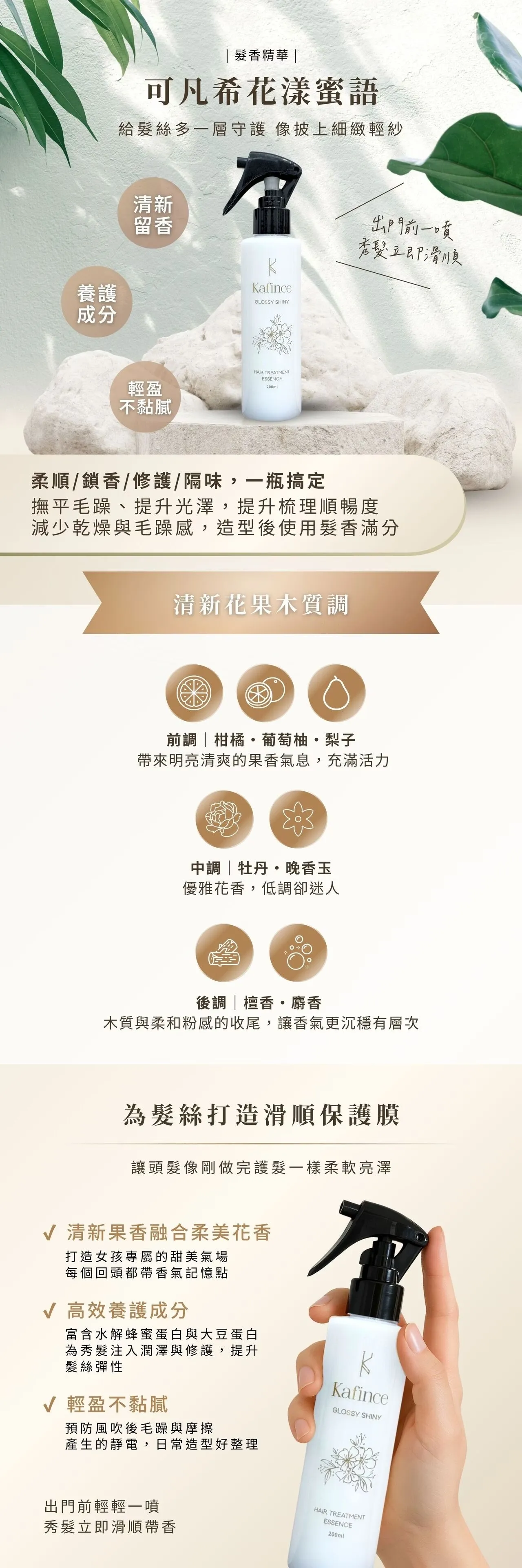 可凡希花漾蜜語,是一款兼顧「柔順手感、清新香氣與輕盈不黏膩」的日常髮絲調理精華。