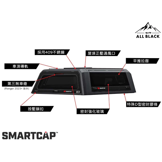 🔹專利的車頂導軌可隨時再添加其他Smartcap來安裝架、車頂帳篷、自行車、皮划艇、梯子等。