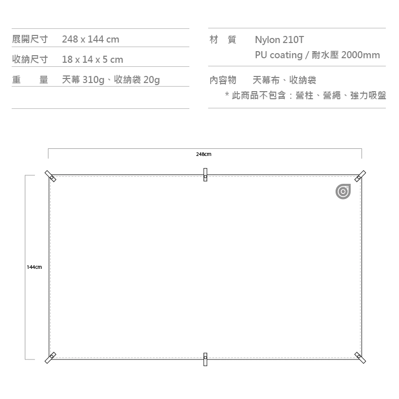 尺寸:天幕310g、收納袋20g