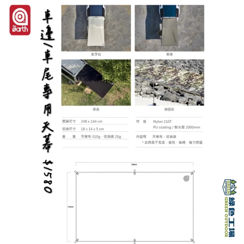 商品【綠色工場】 YAKIMA SLIMSHADY AWNING 車邊帳 250X250cm 車邊帳篷 天幕 客廳帳 遮陽