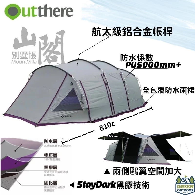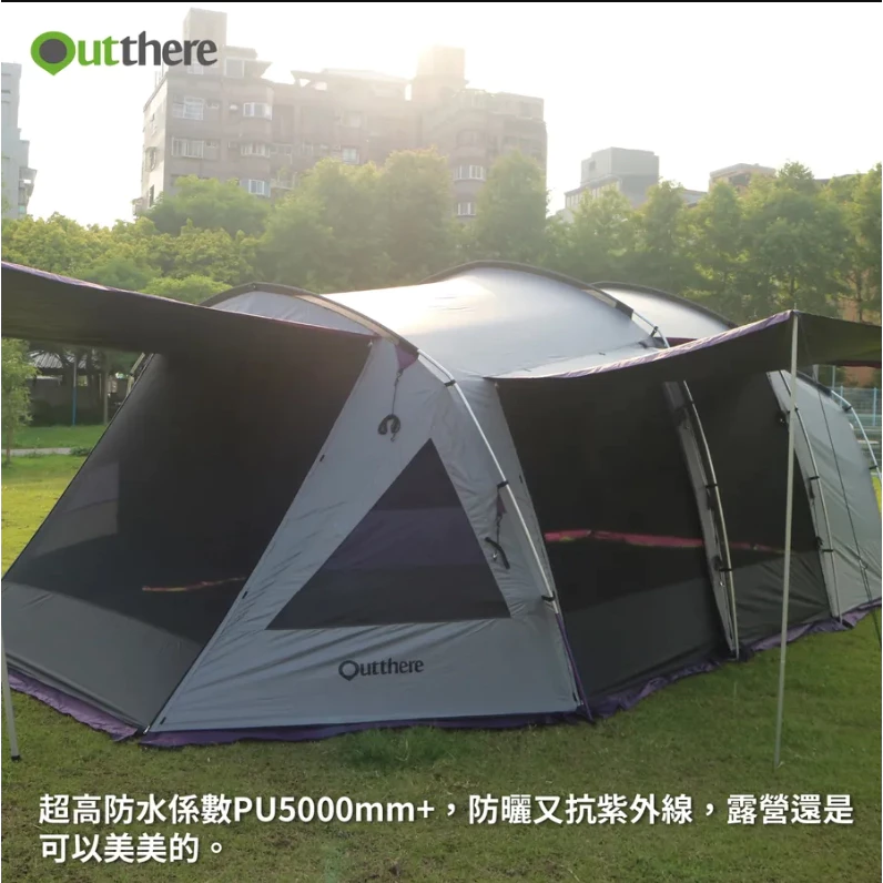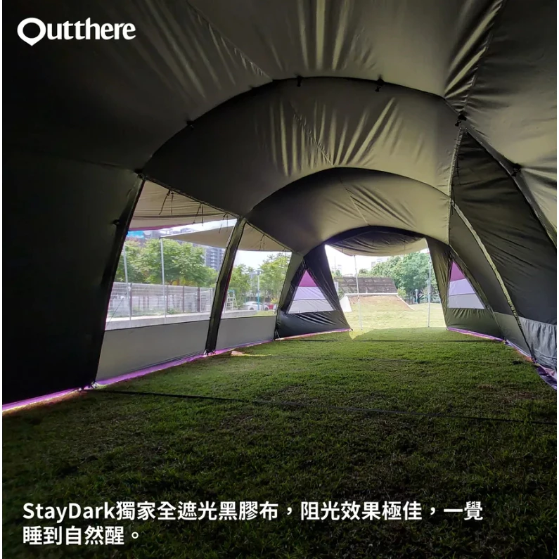 🔸Outthere的旗艦款隧道帳---「山閣別墅帳」是台灣最長的黑膠隧道帳,長度810cm、寬度400cm、高度240cm,堪稱台灣帳篷界的巨無霸,但她卻維持一貫的優雅,體積重量都超乎想像地輕巧,僅重23公斤,4支粗壯的航太鋁合金帳桿就能輕鬆又快速搭設帳篷。