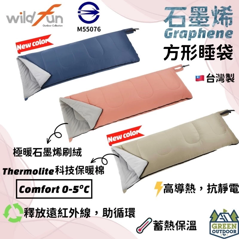 【綠色工場】Wildfun 野放 石墨烯方型睡袋 遠紅外線 T3科技棉 舒適溫度0~5度 戶外露營 旅遊 居家