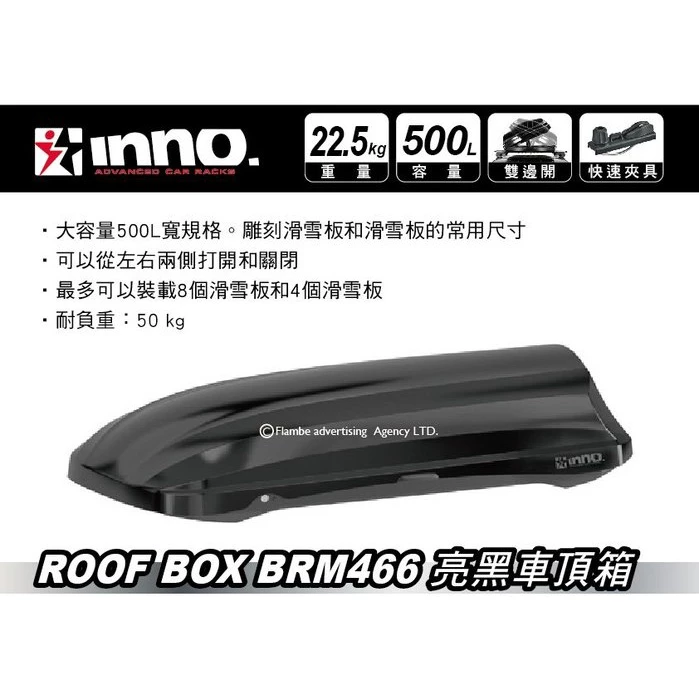 【綠色工場】INNO BRM466 車頂箱 500L 日本原裝 雙開快拆夾具 車頂箱 車頂置物箱 行李箱 車頂書包 漢堡