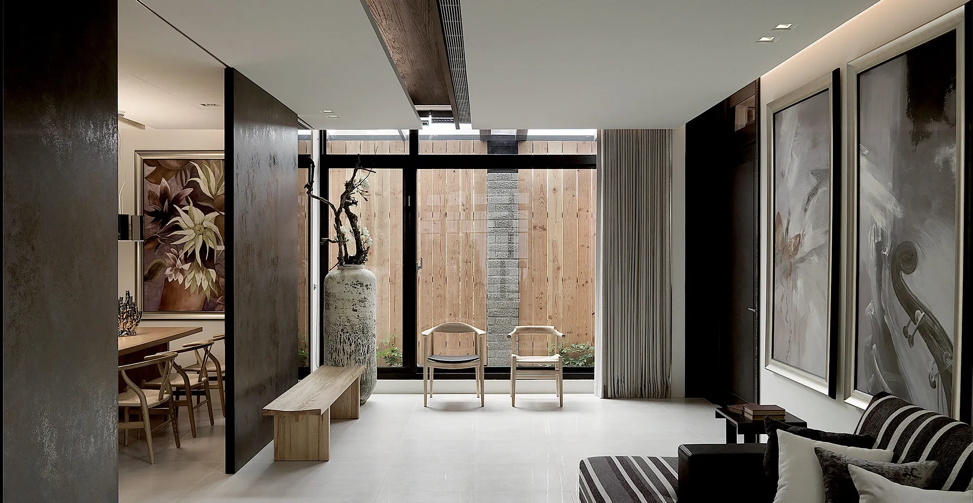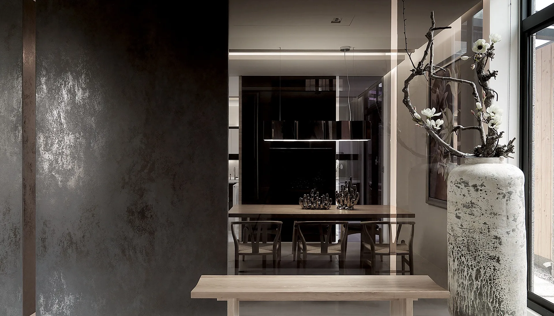設計‧家‧不只是設計,設計師認為唯有將設計與生活完美結合,才能創造出兼具美學與機能的新生活場域。此案設計師以沉靜內斂為主軸,塑造一隱身都市叢林中之世外桃源,在定靜空間加入微動節奏,顯現業主夫妻詩意的生活步調。