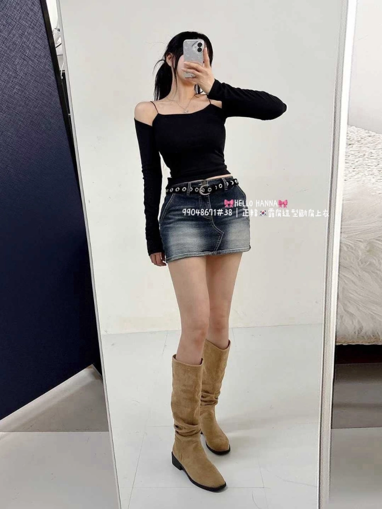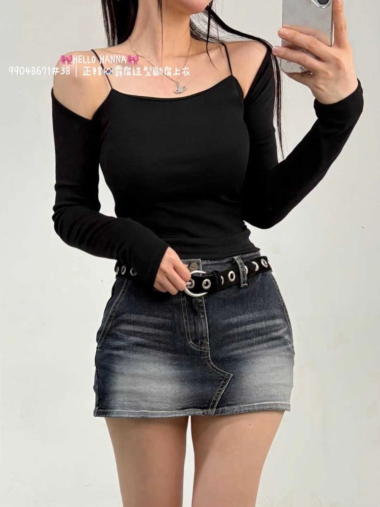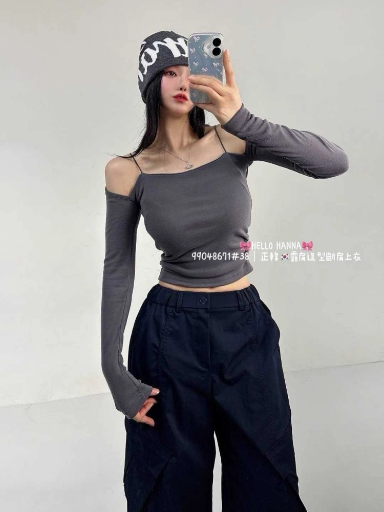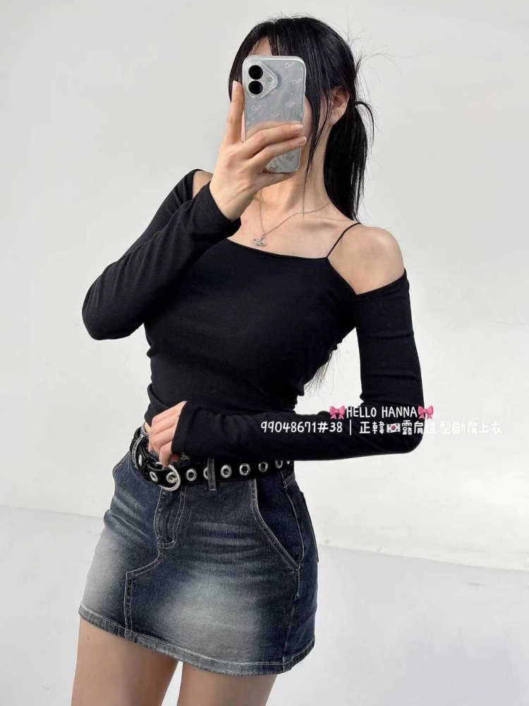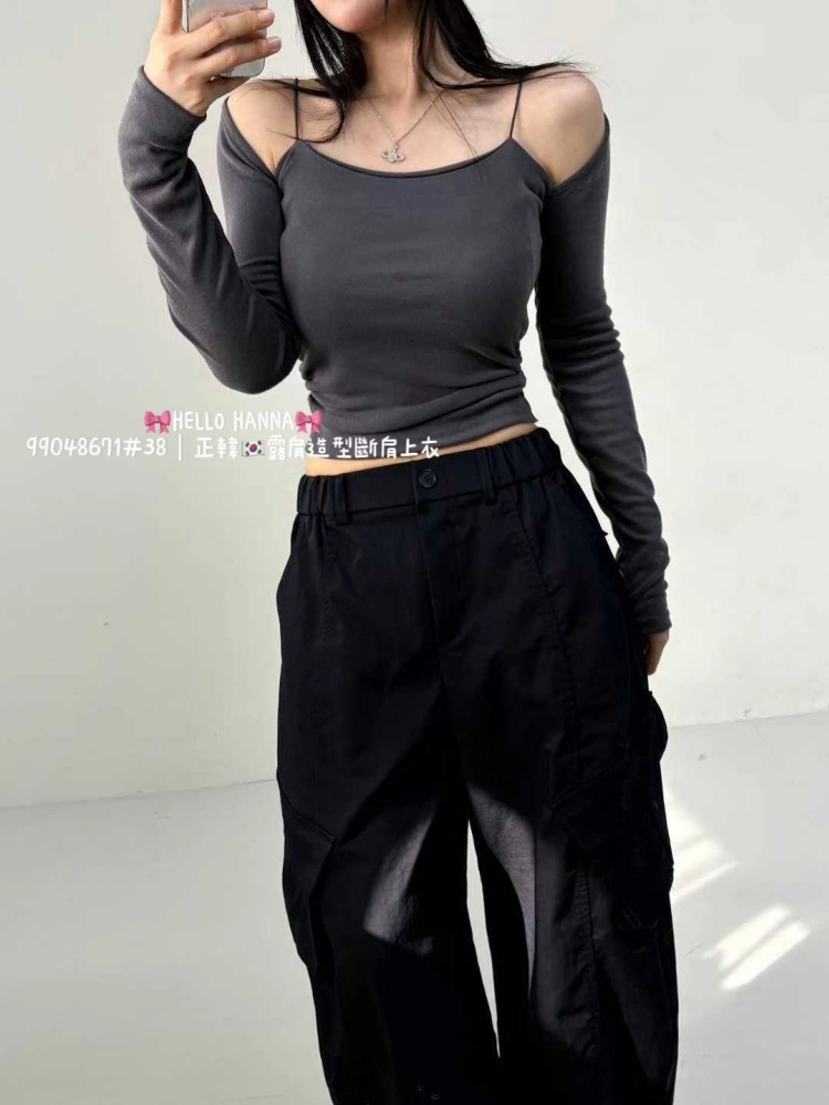 • 正韓露肩造型斷肩上衣