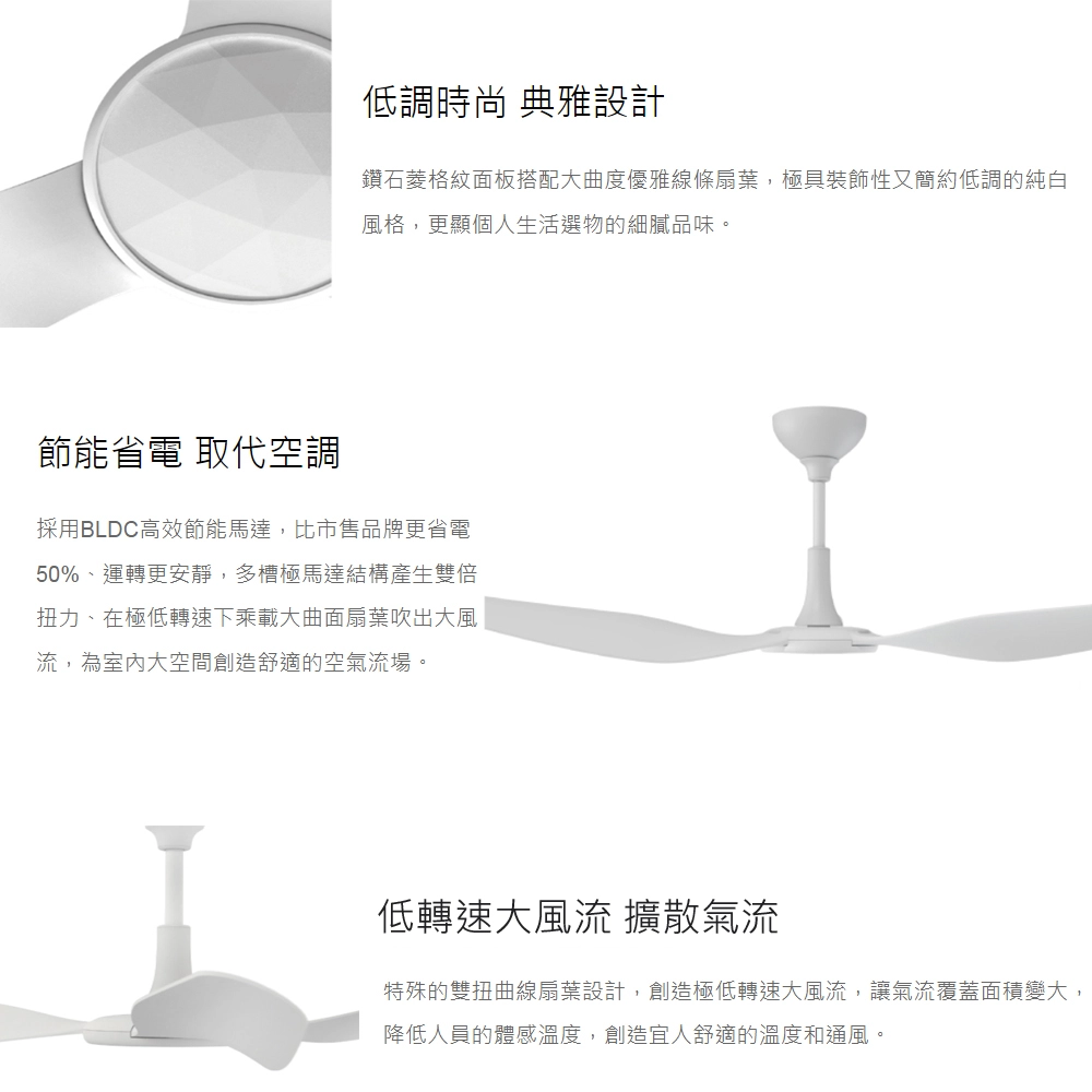 商品將財 台灣製 62吋DC吊扇+燈具附遙控器110V DC91-932白/DC91-931黑