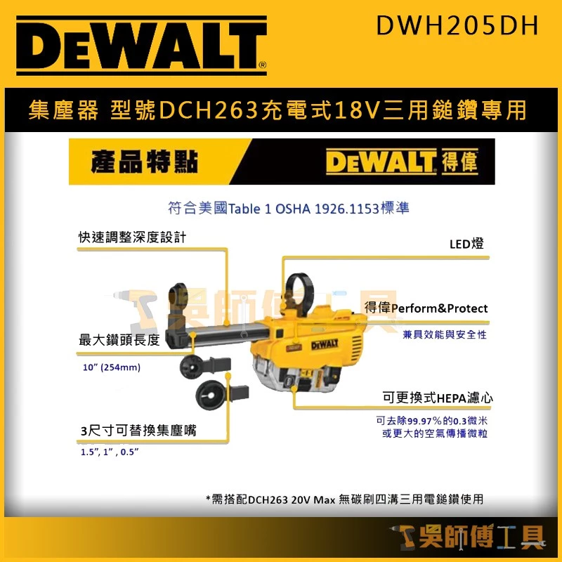 【DWH205DH】集塵器(DCH263 18V三用鎚鑽專用)