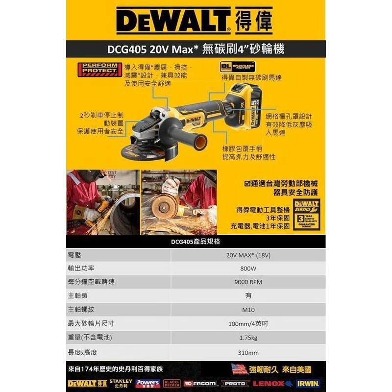 【DCG405P2】鋰電無碳刷4英吋砂輪機(5.0AH雙電 )